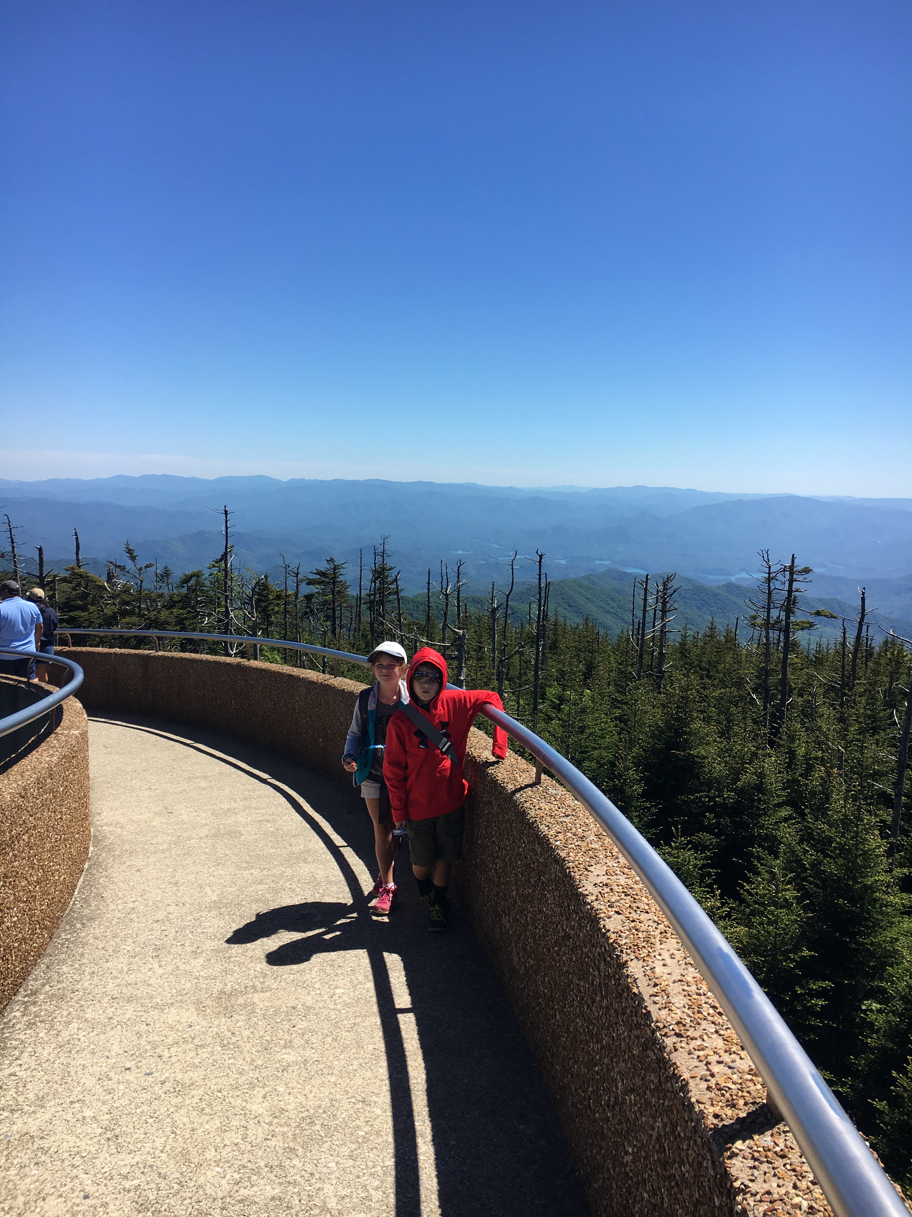 Our next stop, Clingman’s Dome on the Tennessee/North Carolina border. We climbed rocks and took the steep trek up the mountain to the observation tower. My daughter saying, “I can’t do it.” My son and I encouraging her she could and she did. We changed the language from I can’t to I can and it made all the difference. We overlooked miles upon miles from the highest point in Tennessee; AMAZING!