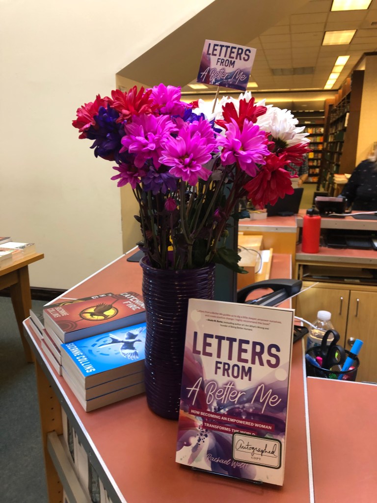 I have purchased so many of the books that got me where I am today from this store. There was no where else I wanted to be on launch day! Tina shows up with beautiful flowers with a Letters from A Better Me sign tucked in, perfect, just perfect! The President of the Seymour Agency pleasantly surprises us for this special moment.