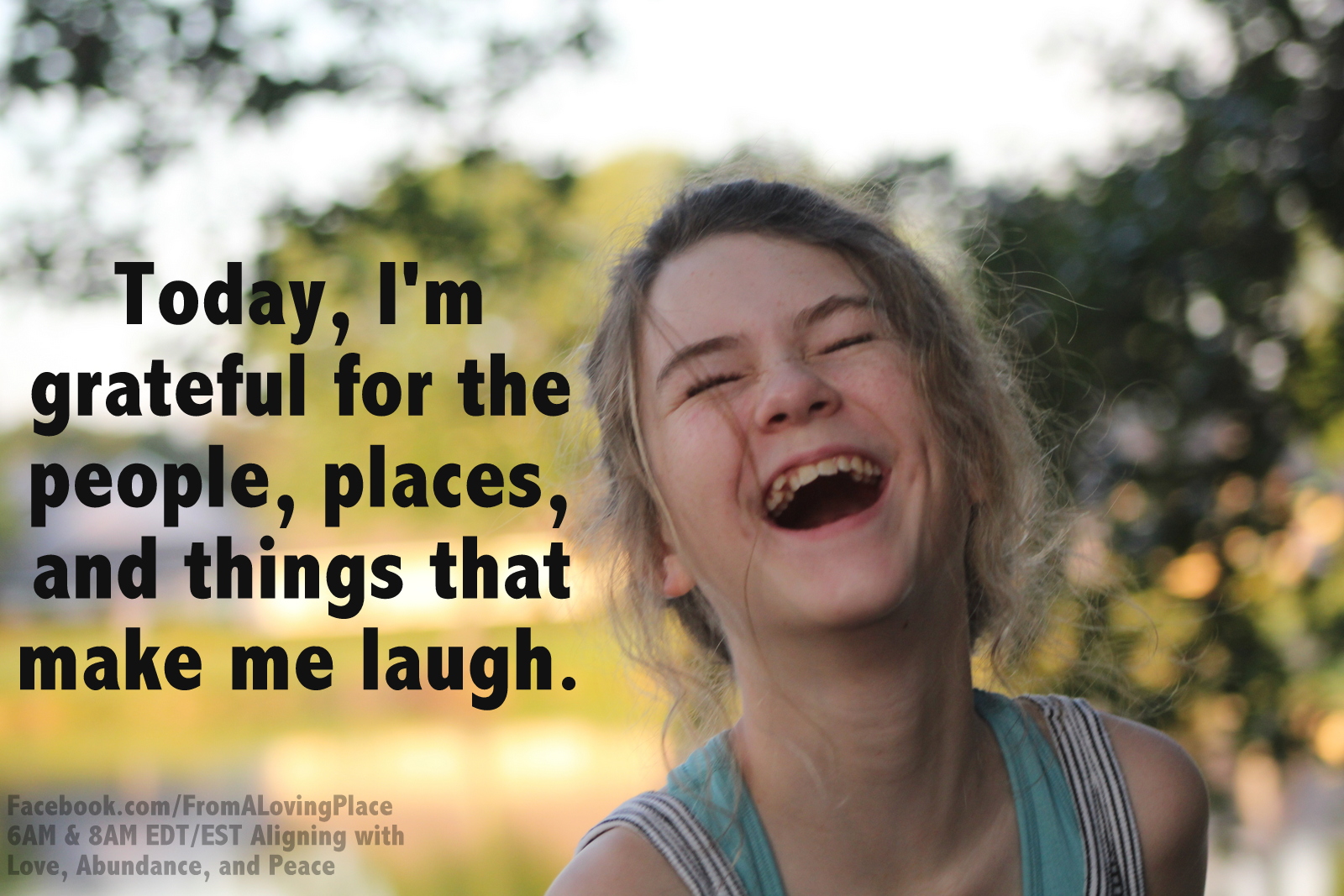 UPDATED MARCH 2024 There is a reason laughter is called one of the BEST medicines. When we appreciate the people, places, and things that make us laugh, we attract more to laugh about. One of the saddest things I notice when working with people is how they brush away their laughter like it’s no big … Continue reading Daily Aligning with Love, Abundance, and Peace #11