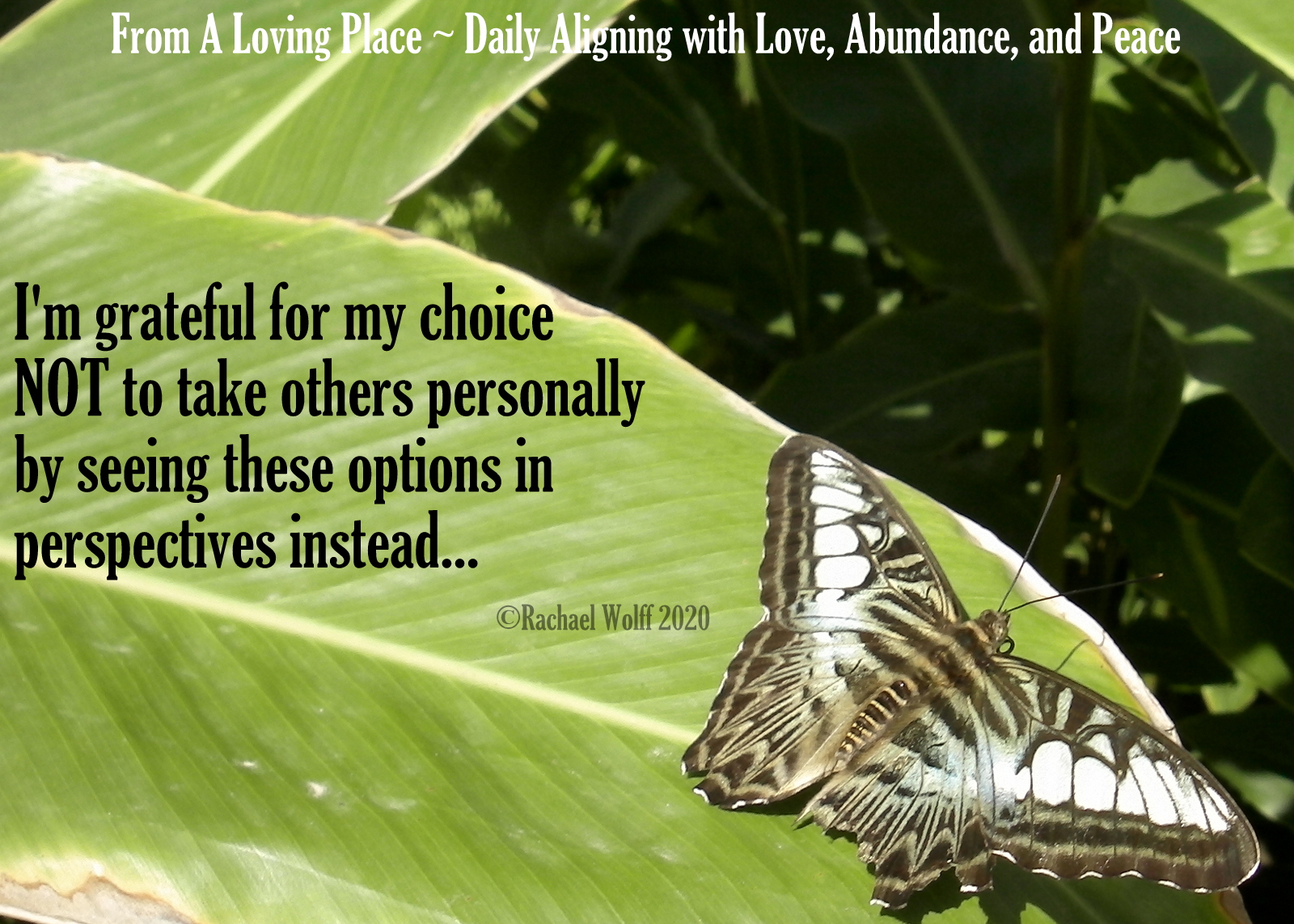 UPDATED MARCH 2024 In order to align ourselves with love, abundance, and peace we have to stop taking what other people say and do personally. If their energy is aligned with fear, lack, and separation, that is what they will project onto whoever will listen and/or align with their energy. My mom has been telling … Continue reading Daily Aligning with Love, Abundance, and Peace #19