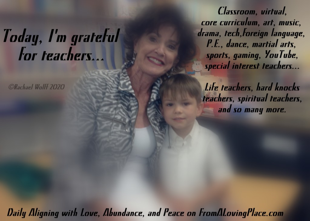 The wonderful thing about being in the energy of love, abundance, and peace is when we share it…the energy MULTIPLIES. Let us flood teachers with our appreciation today and watch the energy expand. Let’s make sure teachers know how appreciated they truly are. Even if you can’t find your favorite teachers, write them a letter putting your full love and appreciation in it. Watch what doing this exercise does to your energy. You don’t have to send it. It’s beautiful. Enjoy the journey. Who will you thank today?