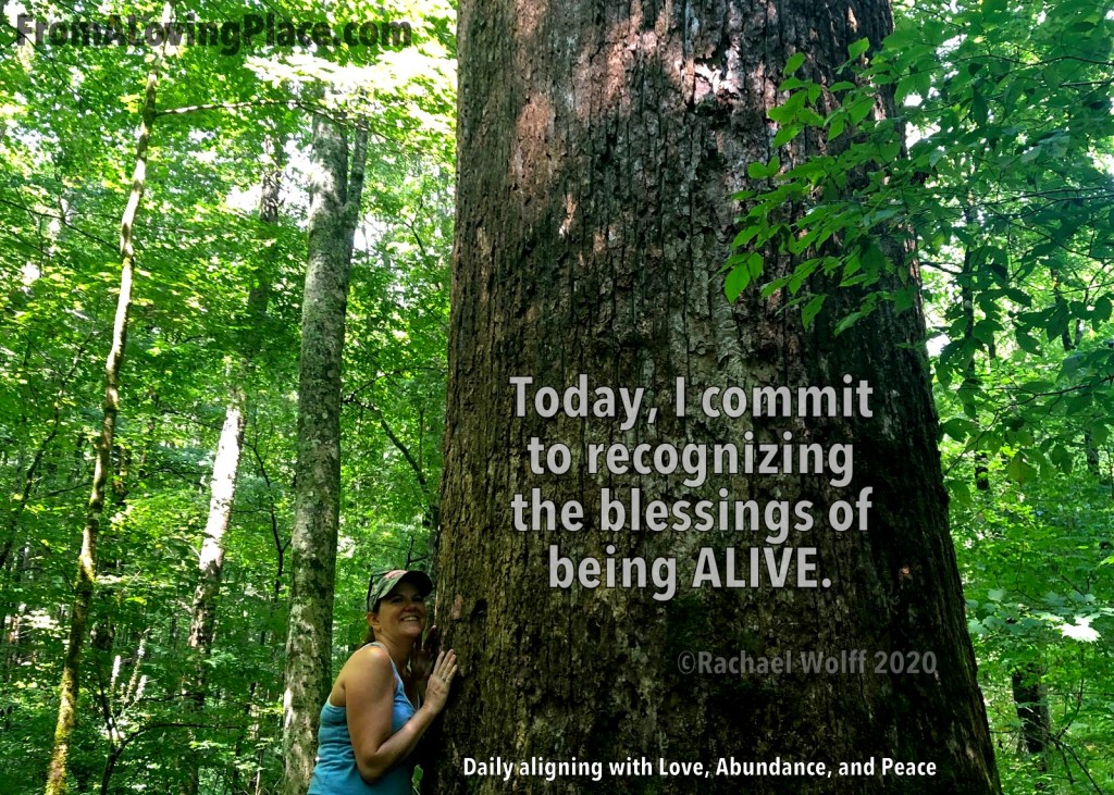 Today, I commit to recognizing the blessings of being ALIVE. This is what living in the energy of love, abundance, and peace is about. Today, I’m going to do a particular exercise and I hope you will do it with me. This is one of the practices I use when I want to really FEEL alive. I go outside barefooted. I find a spot and plant my feet on the Earth. My palms are open by my sides and I start taking deep breaths in and out to the count of 10. Once I feel myself starting to relax, I start imagining myself as a tree with deep roots into the Earth. I imagine the energy of love coming up from the ground and into my feet, up my legs, through all my organs, into my limbs, and up through my head. Then I imagine that light connecting me to the Universe. Usually by this time my whole body is tingling with energy. I thank the creator, I thank the Earth, and I thank the energy of love for filling me up. When I’m done with this exercise, I feel so connected and at peace. We are each on this Earth with our own unique purpose and journey. We are only accountable and responsible for the energy we put into where we go, what we do, how we think, and when we change. When we are open to grow and expand, we make more space for love, abundance, and peace. We are each given an opportunity to live this life with purpose. We just have to take it and appreciate the opportunity to be here right now in this moment. What are you going to do with it?