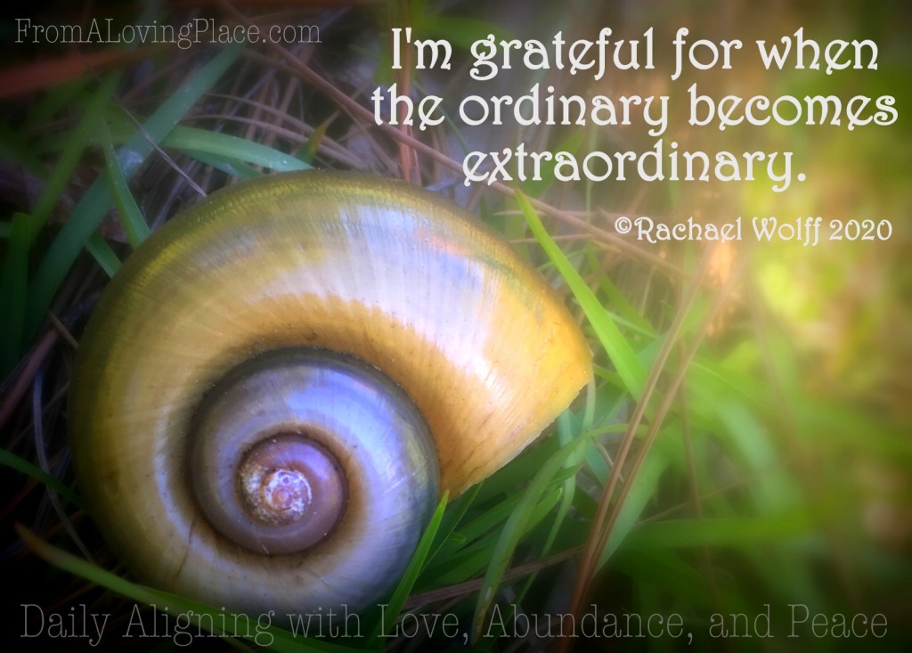 I love when I look at something and see it’s beauty like I’ve never noticed it before. I remember the day I saw these giant snail shells on the ground. The colors, shapes, dimensions, and sizes put me in a state of AWE. I walked around with the biggest smile across my face all by being witness to the extraordinary.