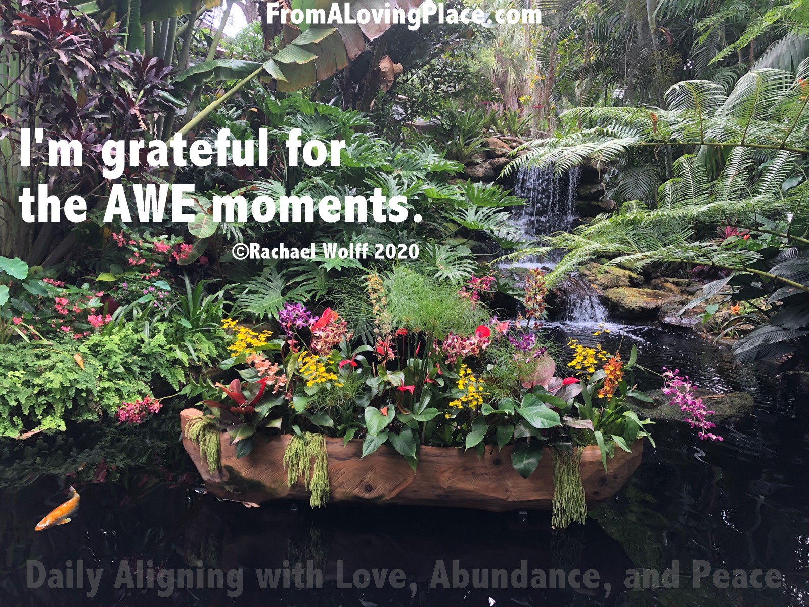 AWE moments are those ones that truly MAKE you take a deep conscious breath, because whatever it is you’re looking at or experiencing takes you to a place of the most authentic joy. It can be from a moment shared with loved ones, nature, animals, friends, strangers, roller coasters, pictures, books, etc. It’s not something … Continue reading Daily Aligning with Love, Abundance, and Peace #83