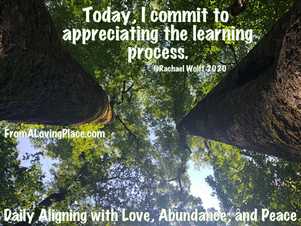 Today, I commit to appreciating the learning process. I’ve talked previously about repetition. When I’m ready to apply something that I’ve learned, repetition is key. What I’ve learned about myself is to not add too many things to my plate all at once. I prioritize what I want to add to my plate. Then I figure out what I’m doing right now that is not contributing to the energy of love, abundance, and peace (example: watching election coverage) and I STOP doing it. That space I was using to watch endless fear, lack, and separation will now be filled with things that contribute to my mental, emotional, spiritual, and/or financial well-being. Wow, that makes so much more sense. I’m committing to learning about one new thing a day that helps me align with love, abundance, and peace. This is going to be fun!