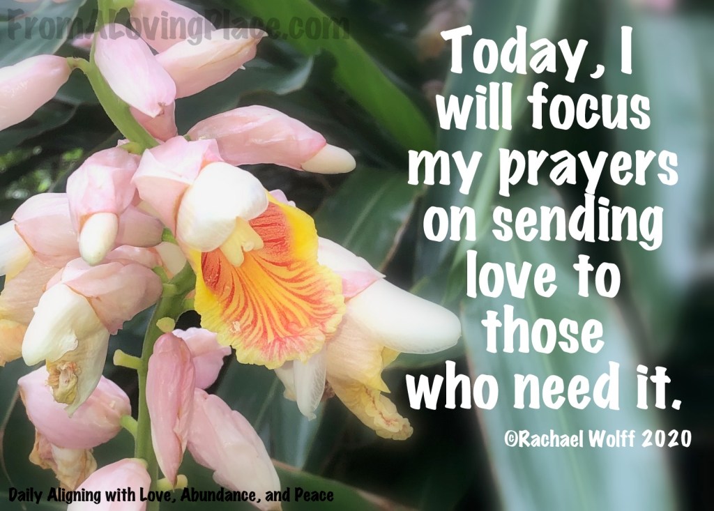 Today, I will focus my prayers on sending love to those who need it. Now, for me this is a VERY powerful exercise. I don’t just send love to people who are easy to send love to. I send love to those who actually need love the most, the people spreading fear, lack, and separation. I know when I fall into that energy, I say a prayer for myself and it helps me to gain the space to see myself, so that I can spot where I’m connecting to that energy. Then I ask God to help me take the story that is connecting me to that energy away.