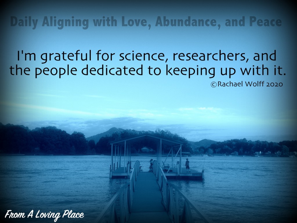 Other new science I find fascinating is brain science. The discoveries in brain science are mind-blowing. There is also new science in DNA, cannabis, human behavior, energy, education, and so much more. I love seeing what is new out there. When I open my mind to what changes and develops through scientific research, it helps me to open my mind to make changes in my own life. I open myself up for discovery.