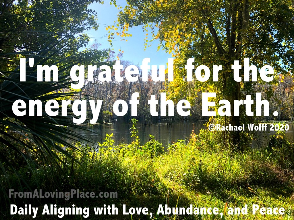 I’m grateful for the energy of the Earth. Whenever I’m struggling to get out of my own head, or I feel consumed with the chaos of the outside world, I go outside and either plant my feet on the ground or sit on the Earth and put my hands on it. It’s a reminder to re-align myself energetically. I love when I can get quiet enough to feel the pulse. I slow down and take a deep breath just thinking about the peace I feel as the energy of the Earth flows into my hands and feet. I feel one with the Earth. It’s an authentic way to connect to the energy of love, abundance, and peace.