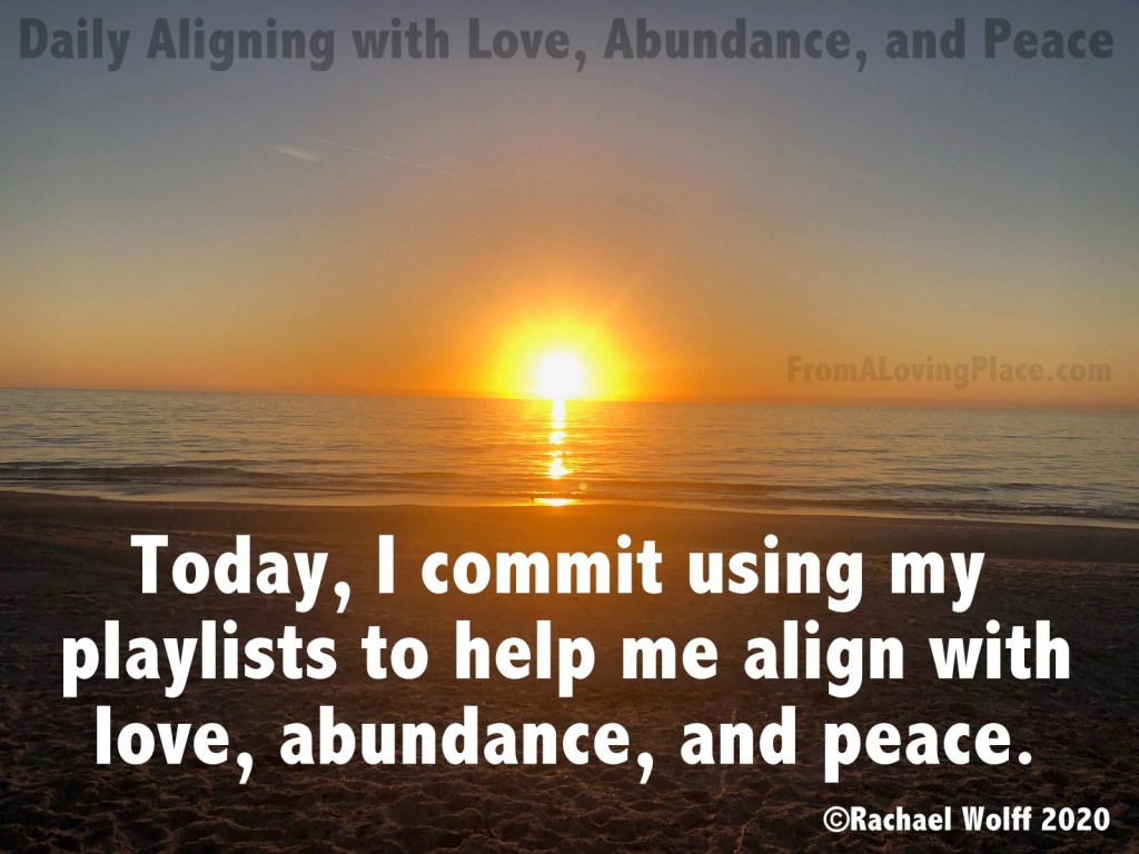 Today, I commit to using my playlists to help align with love, abundance, and peace. This is a practice I highly recommend to EVERYONE!! Making playlists for those times when we are struggling to align is like a instant dose of medicine. I have playlists for different things. That way if I’m in the energy of fear, lack, and separation, I have a remedy for it. I will be talking about another one of my remedies tomorrow.