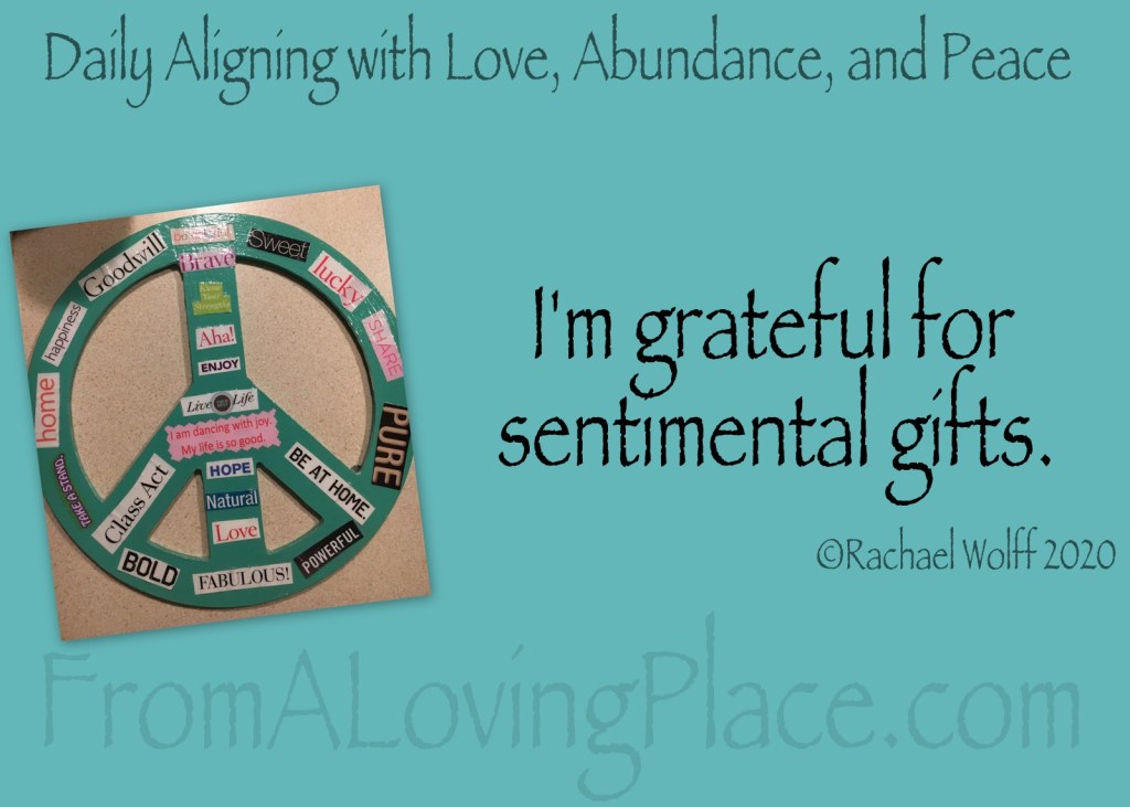 I’m grateful for sentimental gifts. These are my favorite kinds of gifts. I love when I see that gift where I say to myself, “I have to get this for…” I know in that moment, something about the gift has touched a memory of the person I’m buying it for. Then there are those homemade gifts I LOVE to make, but don’t always have the time. Years ago, I would spread all my art supplies across a giant table on my back lanai and from the day after Thanksgiving to the day before Christmas, I was making gifts. When time became a factor, I went down the path of personalized gifts. I love looking through pictures and memories to pick ones that will best represent the person I’m giving the gift to. Then there are years like this year, where time slipped away from me, but it doesn’t stop me from my mission. The people in my life matter, and whether I simply make a collage photo that I send in a text or make them a love list as my friend, Sherry Richert-Belul talks about in her book, Say it Now. There is always a sentimental way to let the people we love know that we care. The amount of money we spend never matters when it is a gift from the heart. Oh, and if it does to the person we are giving it to, just remember. That is their stuff. Keep focusing on how giving them what you did makes you feel, because sentimental gifts have a way of filling our hearts with the energy of love, abundance, and peace.