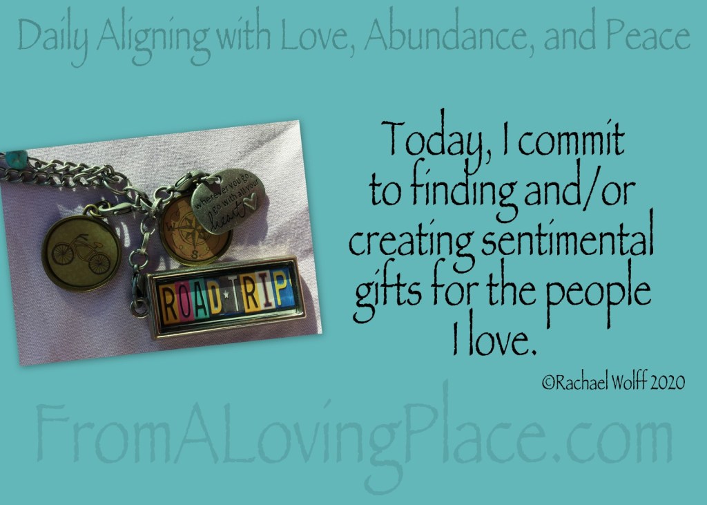 Today, I commit to finding and/or creating sentimental gifts for the people I love. Like I said above, this year got away from me a little bit. I’m determined to be creative and give from the heart. These don’t have to cost a penny. The most important part about the gifts that I give this year is that the people I’m giving them to feel seen and appreciated. I can’t make them feel that way, but I find when I truly put my heart into showing someone I love them, I exude that energy. Unless they are stuck in fear, lack, and separation, they feel it. If they can’t, I understand that it’s because of where they are. They have my seeds of love and appreciation when they are ready to accept them.