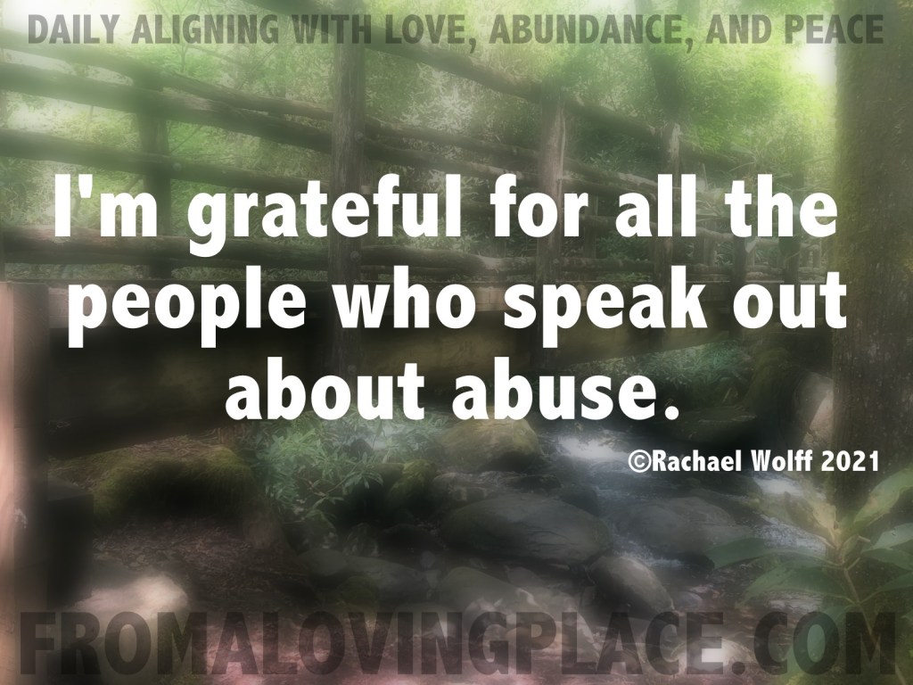 I’m grateful for all the people who speak out about abuse. Tears fill my eyes as my fingers stroke the keys. If you have never been a target of a narcissistic abuser or a sociopathic abuser, you really don’t know the courage it takes to speak out. Some people don’t even recognize that they were abused until they start hearing other people’s stories. Abusers can be parents, family members, neighbors, loved ones, partners, bosses, co-workers, pastors, etc. If someone grew up in a household with abuse unrecognized, they will not see it in others who are doing the same behaviors. We have to recognize it first. Once we recognize it, we open a closed box of painful memories. It’s the people who speak up that help those people through one of the darkest times they may ever have to face.