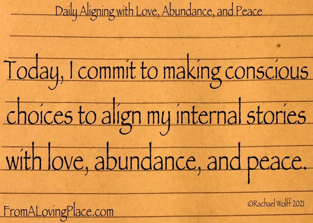 Today, I commit to making conscious choices to align my internal stories with love, abundance, and peace. I’m the only one who has ANY control over the stories in my head. If I want to change them, I have to do the work! One of the things that really helps me is to write down the tools I have before I feel like I need to use them. Some of the tools that have worked in the past to help me re-frame the stories in my head are: