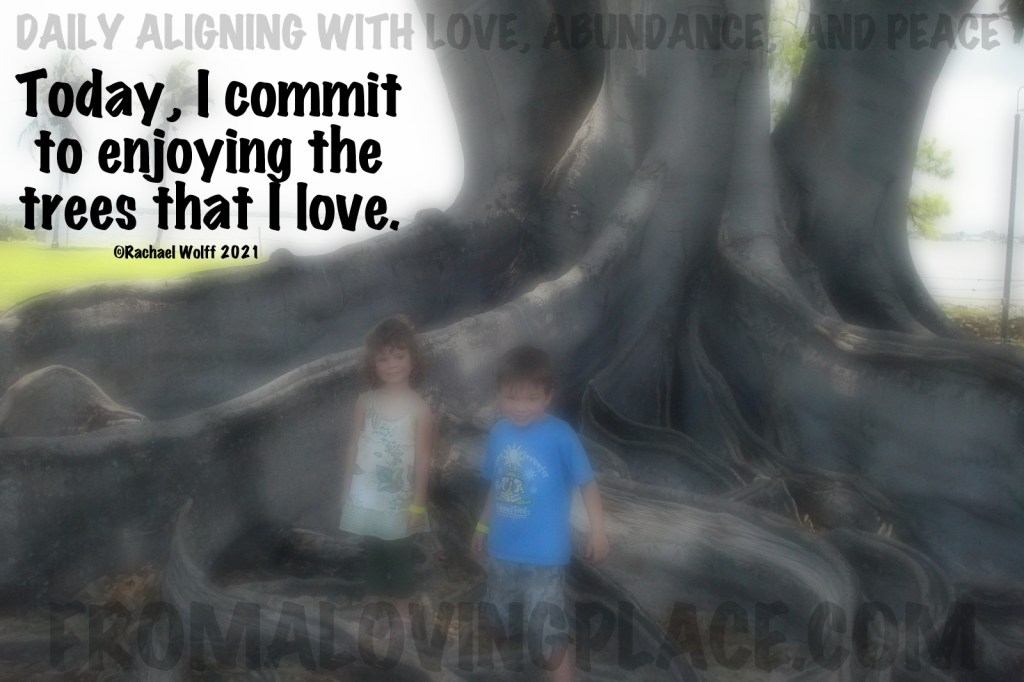 Today, I commit to enjoying the trees that I love. I can be in AWE of banyan trees all day long. This week, I’m focused on the BEING of aligning with love, abundance, and peace. One of the things I love doing is feeling the energy of trees. I love knowing that they are the epitome of what it means to be grounded. Just like the story I shared above, when I connect, I find the answers I need to get or stay aligned with love, abundance, and peace. Today, I will focus on my favorite tree, the banyan tree and see what answers I get.