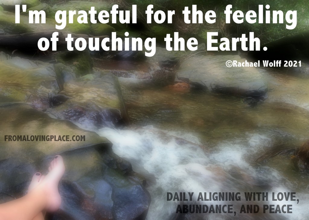 I’m grateful for the feeling of touching the Earth. When I take the time to think about the Energy of the Earth, the gravitational pull, moving through the Universe, and the life that comes from the ground, I’m in AWE. I love standing barefooted on the grass taking it all in. I love putting my hands on it an imaging all the life that comes from it around the world. When I can be in that moment, and just BE with the Earth—I’m in complete peace. We continue this week to celebrate BEING. BEING is one of the fastest ways to align with the energy of love, abundance, and peace and move away from the chaos of aligning with fear, lack, and separation.
