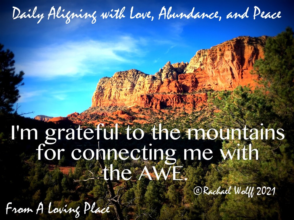 Today, I commit to aligning with love, abundance, and peace by being in AWE over mountain views. One of the things I’ve been enjoying doing is sending prayers out when I’m in the state of AWE. I feel like I’m in my most connected energy when I’m there, so why not share as much as I possibly can. Looking at mountains is so much fun for me, because not only am I aligning with love, abundance, and peace, I’m manifesting more of this beauty in my life. We get back what we put out there. Finding the things that create AWE in our lives is what we need to create more good in the world.