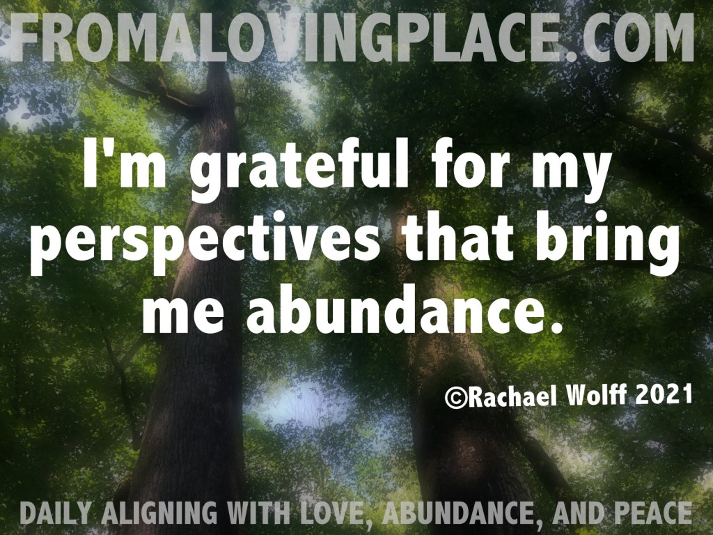 The beauty of filling myself with perspectives that bring me abundance is that it makes more room for even more abundance. My smile is taking over my face as I write these words just feeling all the areas my life is abundant. I also get to see where I still have work to do in making room for abundance in other areas. I’m grateful that I’m conscious of my perspectives, because it gives me wonderful room to grow.