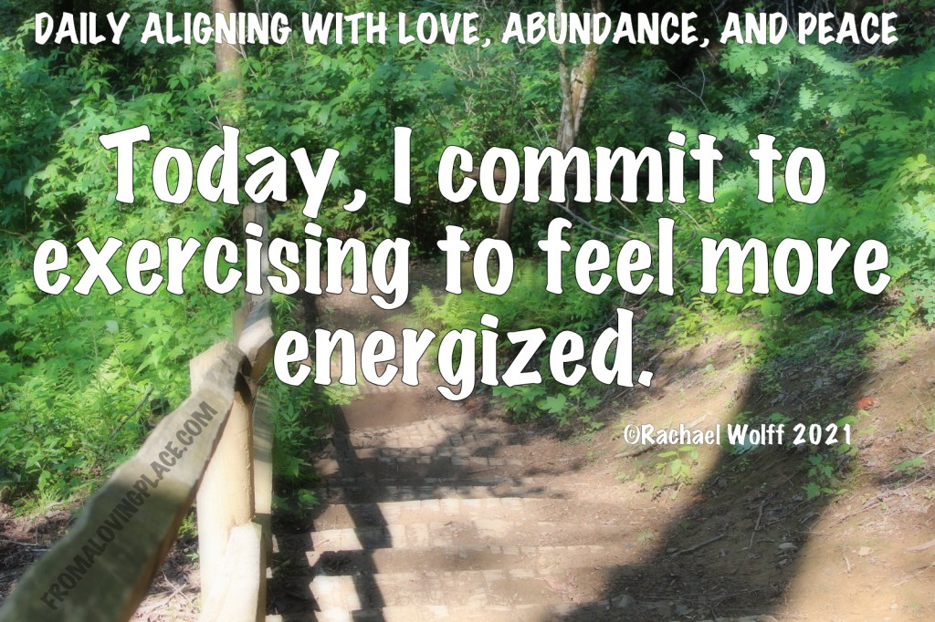 Today, I commit to exercising to feel more energy. Right now, my weight is in the range I’m comfortable with. It’s in these times I need to remember there are other reasons to exercise beyond losing weight. One of those reasons is the increase in GOOD energy. Nervous, stressful, vengeful, angry, and/or chaotic energy is all linked to the energy of fear, lack, and separation. When I don’t take actions steps to take care of my energy, I can easily slip into cycles that will keep me in the chaos. Exercising is one of the ways I like to physically shift my energy into the space of love, abundance, and peace. It took me decades, but I finally found a few exercise programs that work well for me while also getting me the results I want. We each have to find that for ourselves. I pay attention to my energy when I’m working out to see if it’s making me feel better physically and mentally. If it doesn’t, it’s not the right exercise for me. I have friends who do all kinds of different programs. Some I like, and some I don’t. Some I will do for a short time, and others I don’t like from the first time doing it.