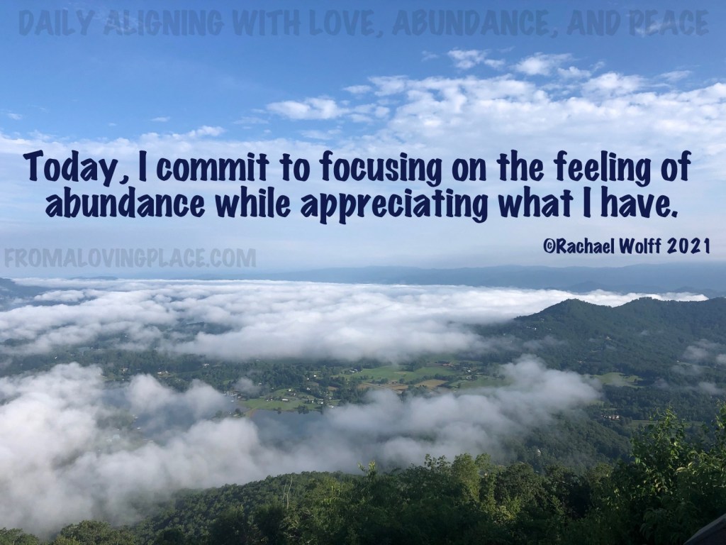 Today, I commit to focusing on the feeling of abundance while appreciating what I have. I’ve realized that just saying or writing the words isn’t enough. In order for me to engage in the full feeling of abundance, I have to really project my gratitude with my whole heart. I have to feel it fully as I write or speak the words. When I can sit in the full feeling of gratitude, that’s when I feel the ENERGY of Abundance after writing the words.