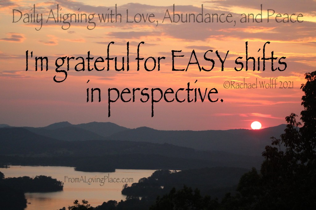 I’m grateful for EASY shifts in perspective. Sometimes shifting a perspective aligned with the energy of fear, lack, and separation to love, abundance, and peace can happen in an instant. I can see a quote, read a passage, hear someone speak, or just get a moment of clarity from being in the present moment. I love those shifts. The energy shift is often palpable. I love the shifts where I actually laugh out loud because it hits me so fast. It’s like a little soul cleansing.