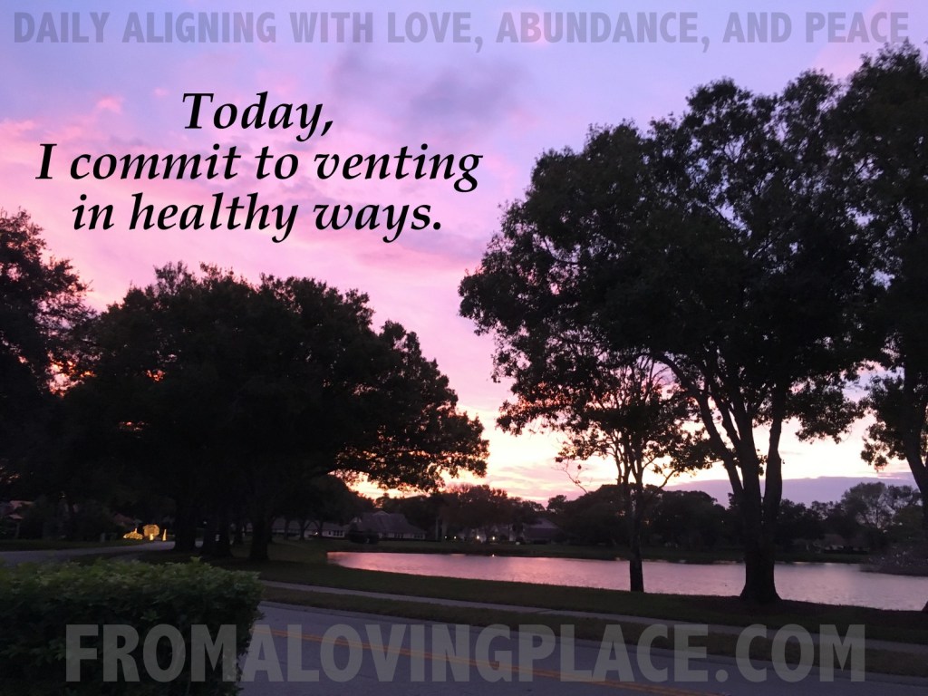 Today, I commit to venting in healthy ways. When I first became aware that the ways I was venting was unhealthy, I made lists of what healthy venting looked like. Those lists helped me to see when I wasn’t helping myself by how I was choosing to vent. Slowly, I started catching myself. My sponsor in AL-ANON (A 12-step program for friends and family of alcoholics) would tell me, I could have ten minutes for a “Pity Party”, then we were moving onto coming up with solutions to get me out of the thinking that was keeping me in the problem. Those weren’t the exact words, but the meaning has never left me, and that happened over a decade ago. I carry her voice with me today. Healthy venting is important. It’s a part of processing our feelings so that we don’t suppress, numb, avoid, or take them out on the people around us. When we don’t find a way to vent our feelings in a healthy way, they can do damage inside and out. Here are some of the tools in my venting toolbox: