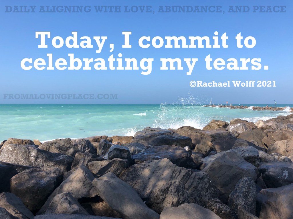 Today, I commit to celebrating my tears.I don’t care if my tears come from feelings that align me with fear, lack, and separation or love, abundance, and peace. I will appreciate each tear that falls from my eyes. I cry many times when I’m writing these daily posts. I wonder sometimes if other empaths can feel that. Anyone around me would tell you that I can cry at a beer commercial. If a commercial has any level of sentimental value, I will proudly shed my tears. I can see a billboard and feel the message to the point of tears. I will not shove my feelings down. I will not pretend that I’m not touched when I am. I will not be afraid to show my soul. I do not feel TOO much. I’m not TOO sensitive. I know how to express my feelings in healthy ways. Some people get uncomfortable with that, but that is their journey to figure out. I love the way I feel and process my feelings. I love the way my tears show me when I need to get harmful energy out of my body. I love that I have less health problems because I know how to let myself feel in healthy ways. I accept my tears with open arms.