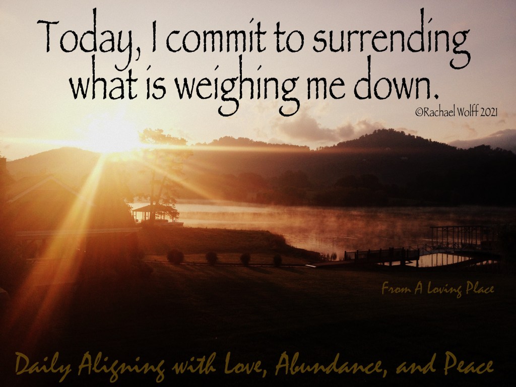 Today, I commit to surrounding what is weighing me down. Carrying worry isn’t serving me. I don’t ever have to carry any energy that doesn’t serve my highest good. If I’m not in the energy of love, abundance, and peace, I am responsible and accountable for getting myself out of the energy of fear, lack, and separation. Here’s some of the ways I will commit to this today: