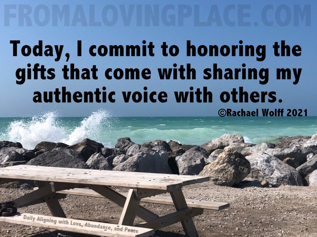 Today, I commit to honoring the gifts that come with sharing my authentic voice with others. Since I found my authentic voice, I found more people who resonate with it. When someone else can feel the energy through my voice, I feel the power of living my truth. Even if I’m working through life’s challenges, I feel confident in what I spread because I know it’s coming from a loving place. I’m conscious of what I put out to the world, because I know that I’m responsible for the energy I’m putting out there. I share with others how I talk to myself. What you read here are the things that I say to help move me through this life in the best way possible.