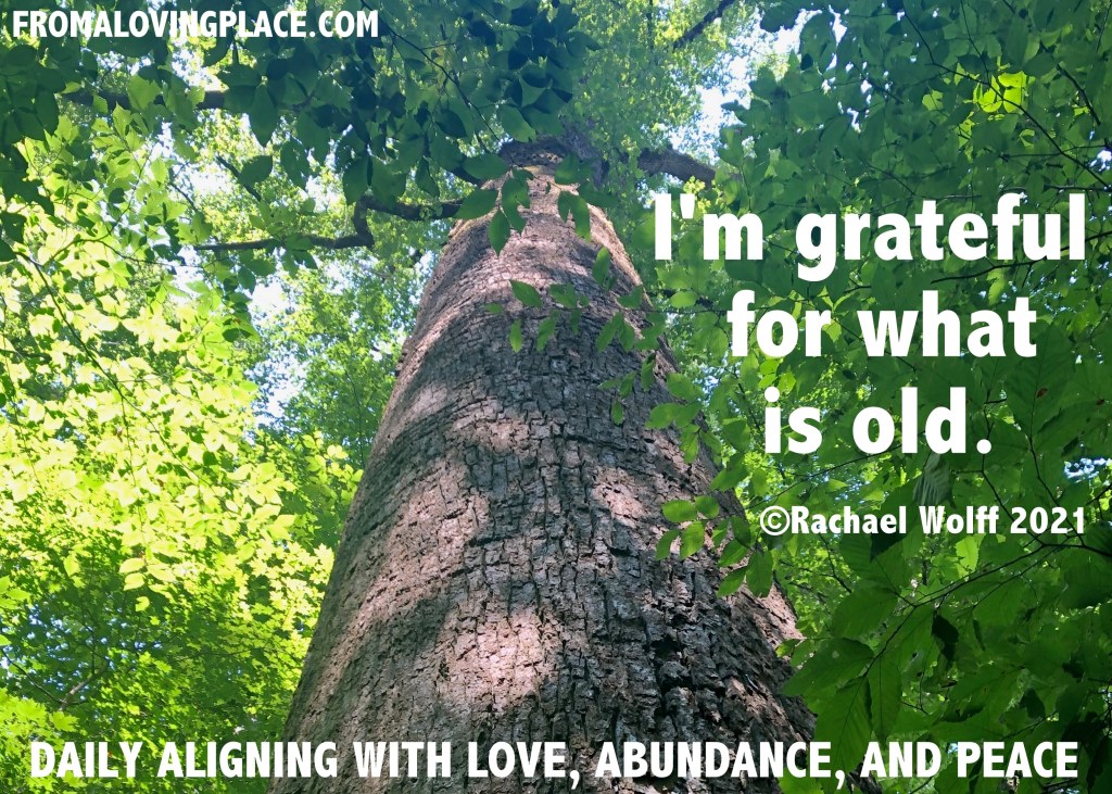 When I sit in appreciation for what is old, I have a peace about me. I feel grounded, like these trees. Notice, it’s the energy of love, abundance, and peace tying all of this together.