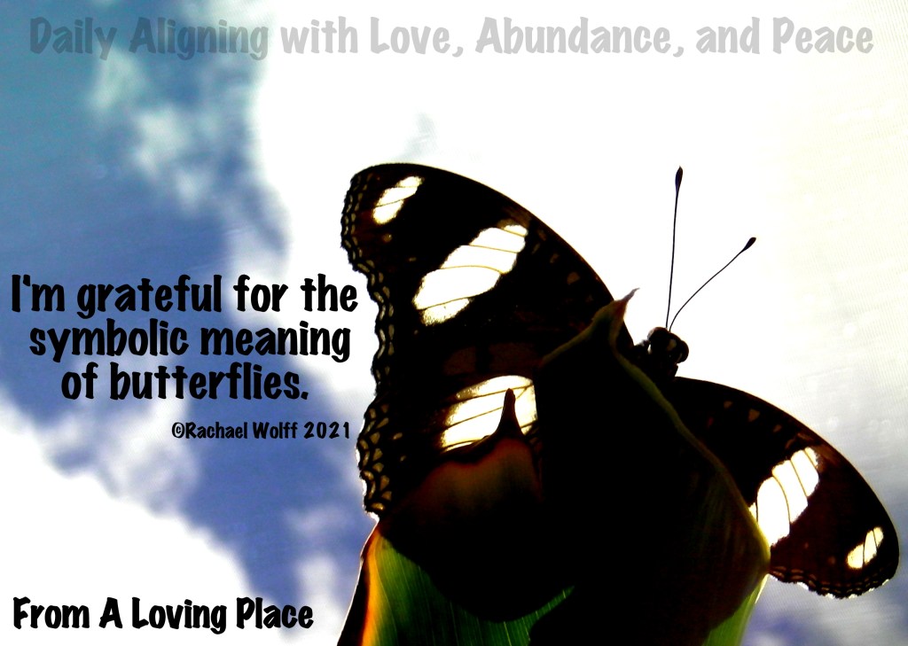 I’m grateful for the symbolic meaning of butterflies. Butterflies represent transformation for me. When I see a butterfly, I don’t just see their majestic beauty, strength, and grace. I see the journey that butterfly took to get the opportunity to fly.