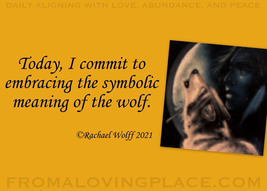 Today, I commit to embracing the symbolic meaning of the wolf. What do I need to do to walk through today with courage, strength, and commitment? How do I need to show up for my pack? How do I show up for life today? Wolves are respected respected creatures. How do I project respect like the wolf? These are the questions I ask myself when I think of embracing the symbolic meaning of the wolf.