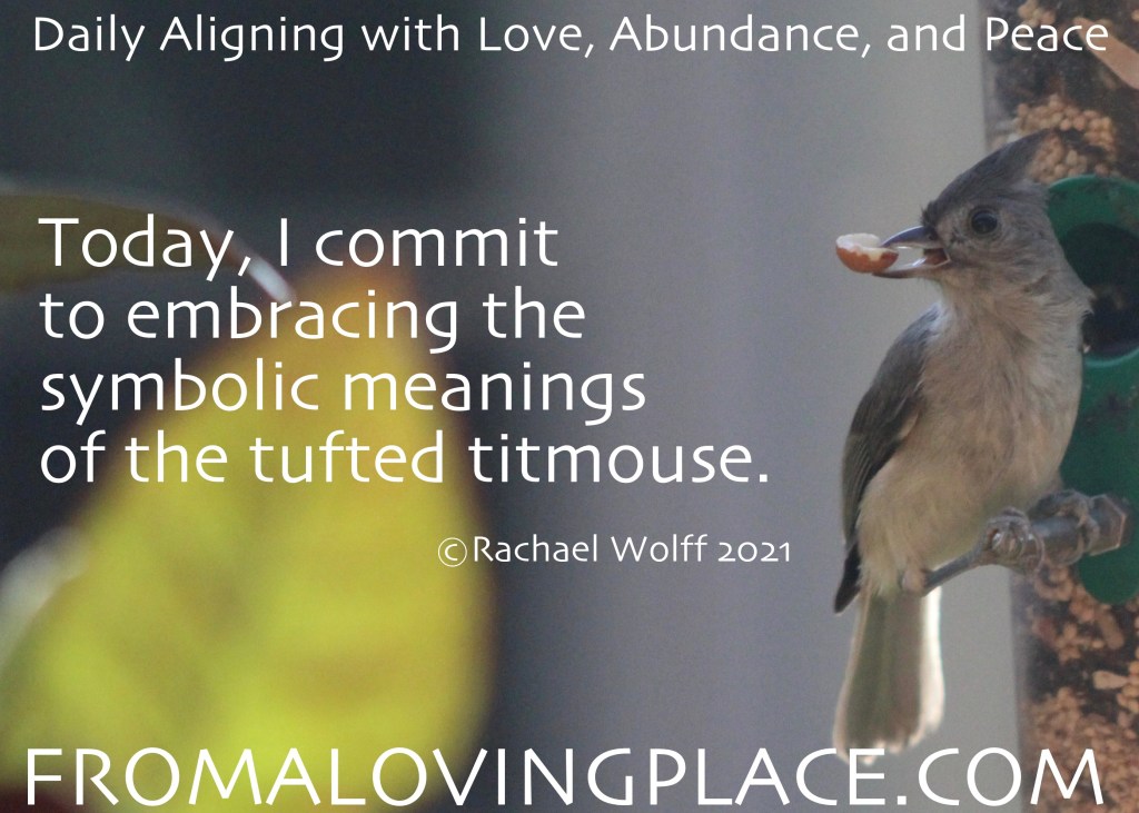 Today, I commit to embracing the symbolic meanings of the tufted titmouse. I’m blessed to have the reminder knocking at my window. I take those kind of signs to heart. Living from a loving place is my calling. I love finding knew and creative ways to align my energy with love, abundance, and peace daily as you can see if you’ve been following along. The tufted titmouse is my reminder to stay the course.