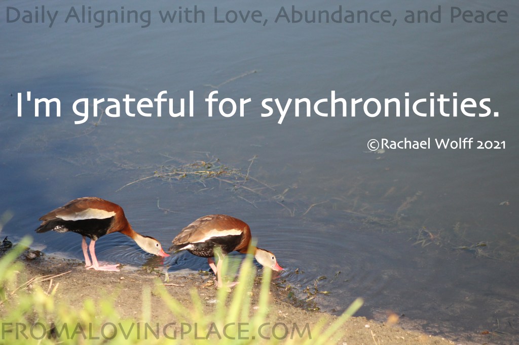 I’m grateful for synchronicities. I’ve been noticing them a lot lately. Even at this very moment, just as I’m thinking about the synchronicity I experienced yesterday with the red-winged blackbird, one flies up to the feeder at the exact moment. EVERY time I notice a synchronicity, my mind and heart go directly to the AWE of Divine timing. I feel at peace in the knowing that everything that is meant to be will make it’s way to me. If I align my energy with love, abundance, and peace, I find a way to take even the darkest moments and find a purpose for them on my path.