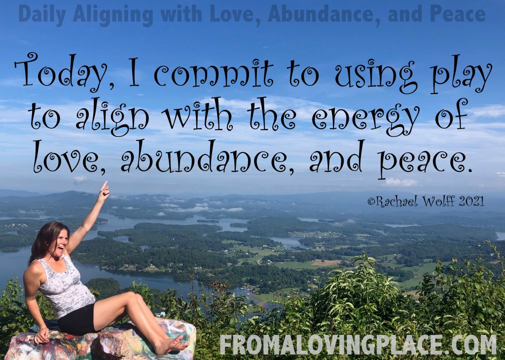 Today, I commit to using play to align with the energy of love, abundance, and peace. As I’m writing this my dog is jumping around in front me ready to go LOL. The energy of play is such a great energy. Play is definitely an area that I have room to work on. Today, I will make the time.
