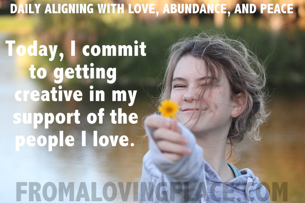 The beautiful thing about getting creative in loving and supporting the people in my life is that I get a HUGE gift too. Just thinking of ways to show someone else support and love lifts my energy into pure alignment with love, abundance, and peace, which is what this entire series is about.