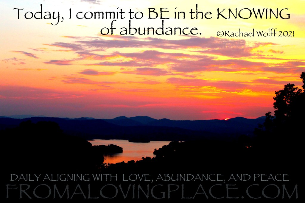 - Sit quietly and go into BEING in the KNOWING of abundance. Just like yesterday’s post, if I’m not feeling complete peace, I’m not in the BEING, and will work through what I need to in order to get back there.