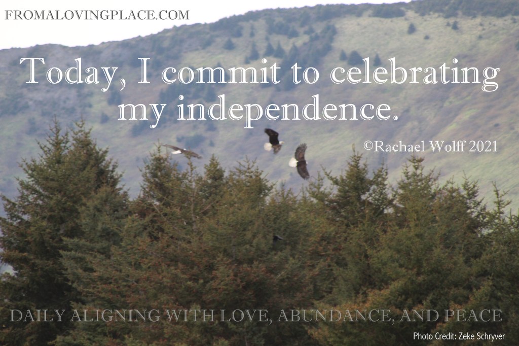 Today, I commit to celebrating my independence. For me, celebrating MY independence means that I’m being responsible and accountable for what is mine. I look at what choices I’m making to align my energy with love, abundance, and peace, because that is where my FREEDOM lives. I’m free to CHOOSE to live in my love or my fear, my abundance or my lack, and my peace or my separation. Each one is inside of me, I get to CHOOSE which one I give power to through my thoughts, beliefs, and actions in each moment. This is how I celebrate my independence as my authentic self. Today, I celebrate my independence by CHOOSING to live and share from a loving place.