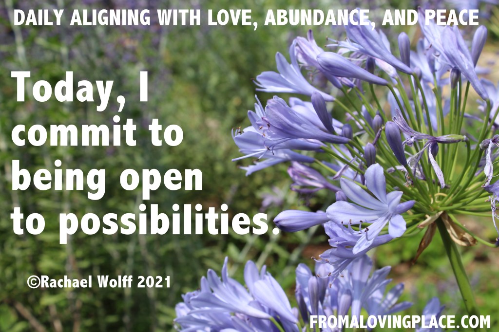 Today, I commit to being open to possibilities. I will align my energy with love, abundance, and peace and see where that takes me today. I love making this a game to see where aligning with love, abundance, and peace will guide me in my thoughts when I’m looking at my daily world. There are endless possibilities! I feel so much better in my interactions with my kids, mate, friends, and family. It was being in this energy that I found that I could find peace in doing laundry, washing dishes, and oh my goodness washing my hands. I’m brought so much joy just walking down the street because I never know what will cross my path.