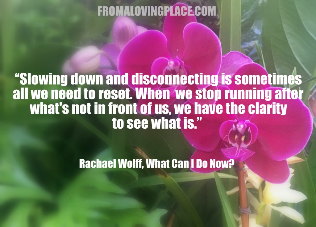 Slowing down and disconnecting is sometimes all we need to reset. When we stop running after what’s not in front us, we have the clarity to see what is.